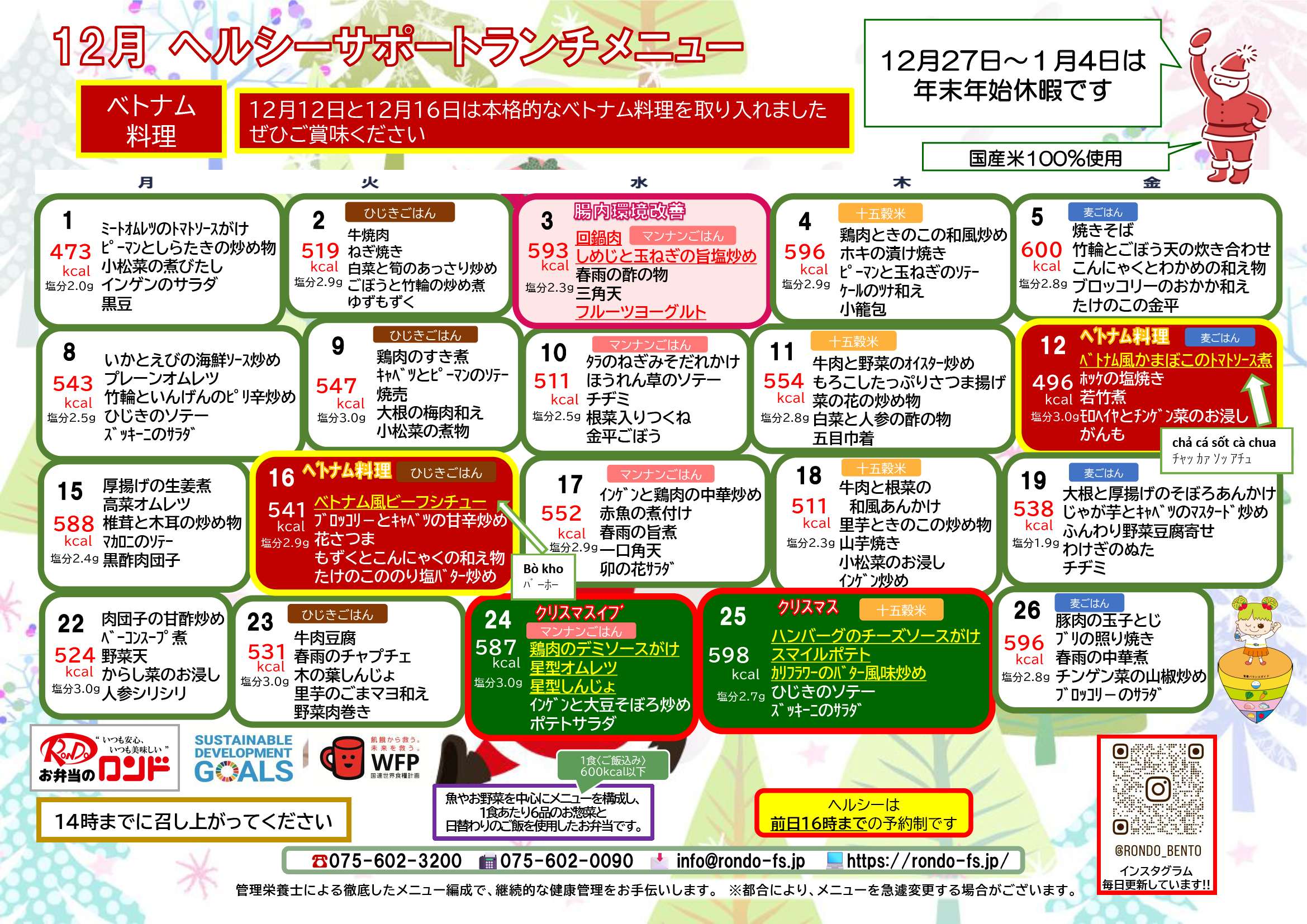 12月ヘルシーサポートランチメニュー